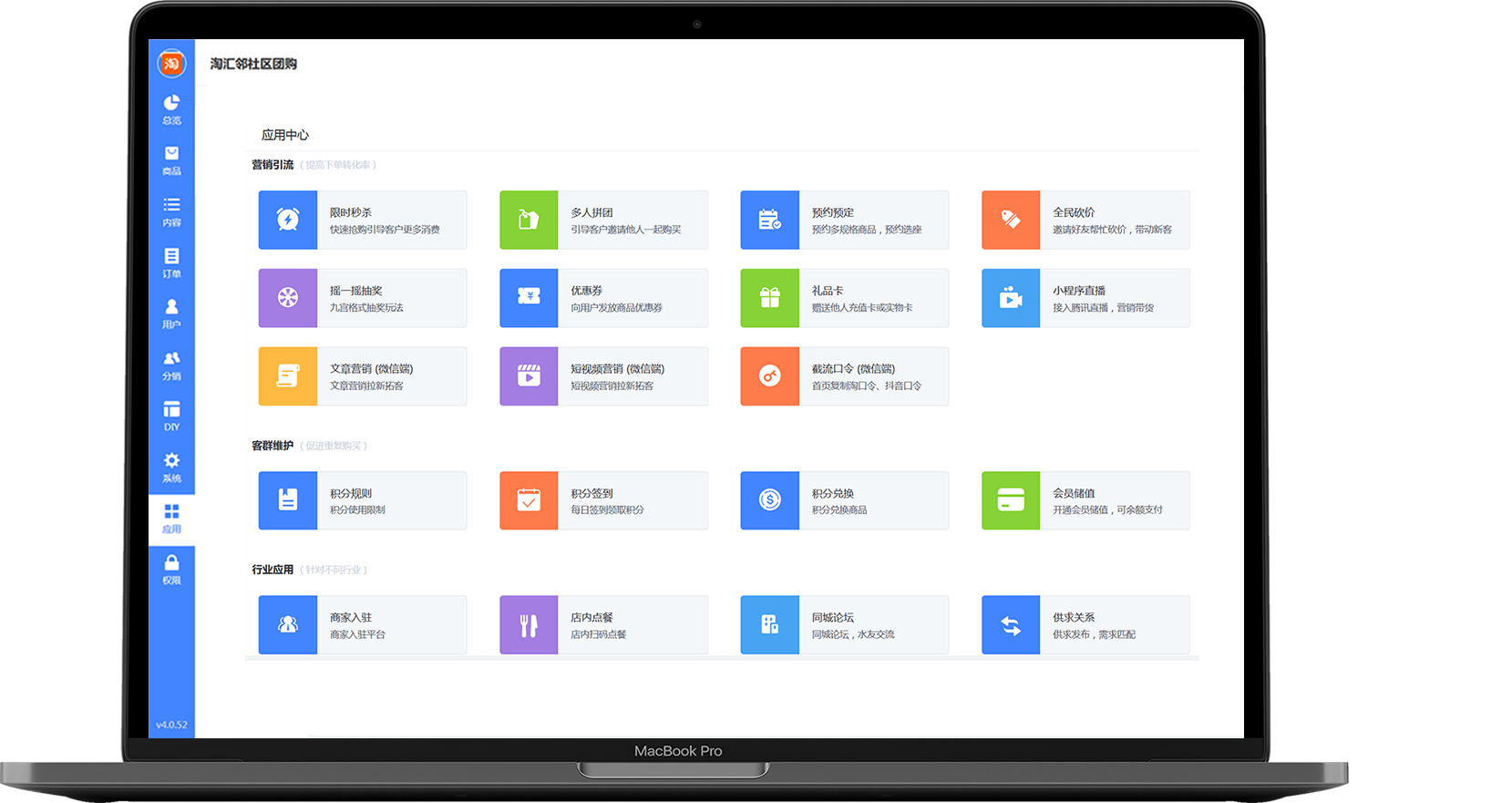 拼团商品后台设置拼团时间、成团人数、团长价格,进行不同程度的营销活动。